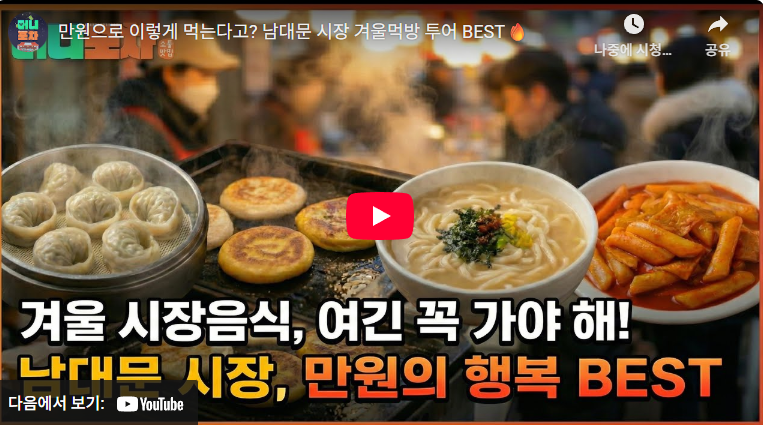 2025년 겨울, 따뜻한 시장 먹거리가 생각난다면 꼭 가봐야 할 곳이 있습니다. 바로 남대문시장에서 진행 중인 특별한 겨울 이벤트, “만원의 행복 먹방 투어”입니다.