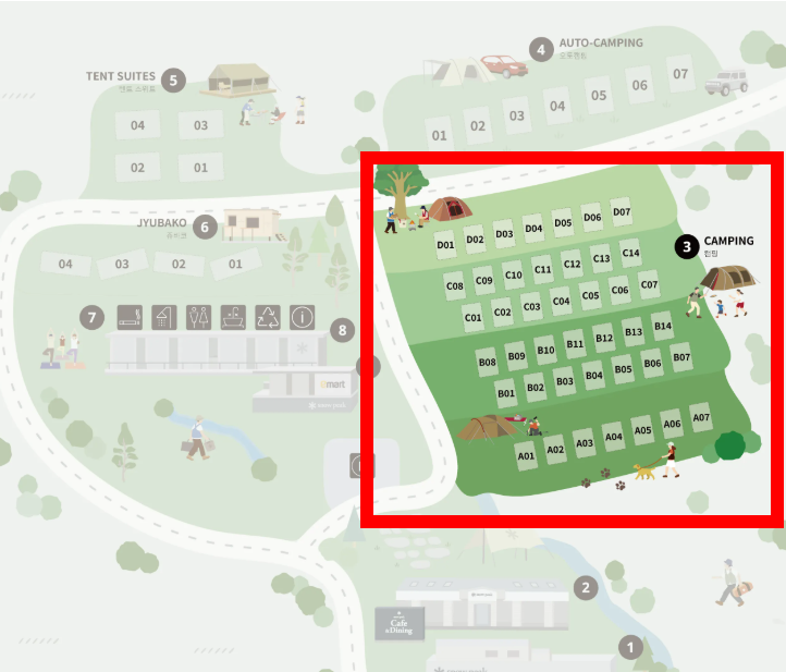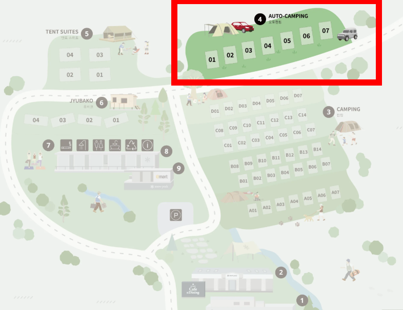 - 오토캠핑장 추천 구역: 1번 (동선 편리)
