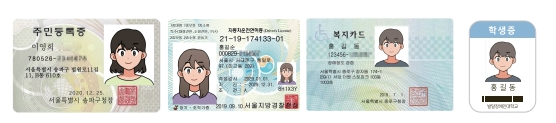 - 주민등록증, 운전면허증, 복지카드, 학생증 , 여권 등 신분증