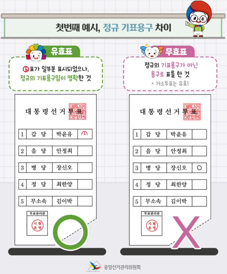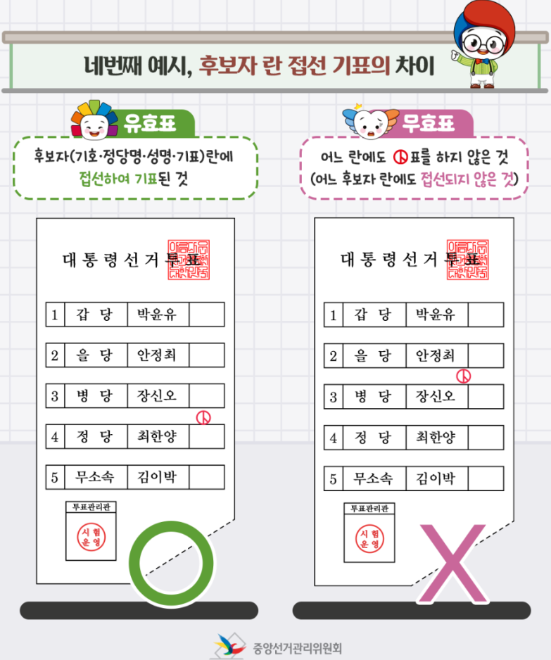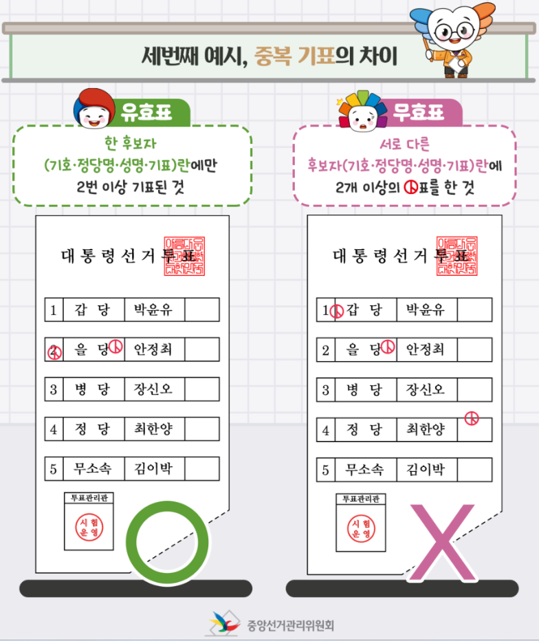 여러분의 소중한 한 표, 무효표로 사라지지 않도록 정확히 투표합시다!