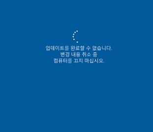 윈도우 업데이트 후에 “업데이트를 구성 중입니다” → “업데이트를 완료하지 못했습니다”를 반복하는 경우입니다.