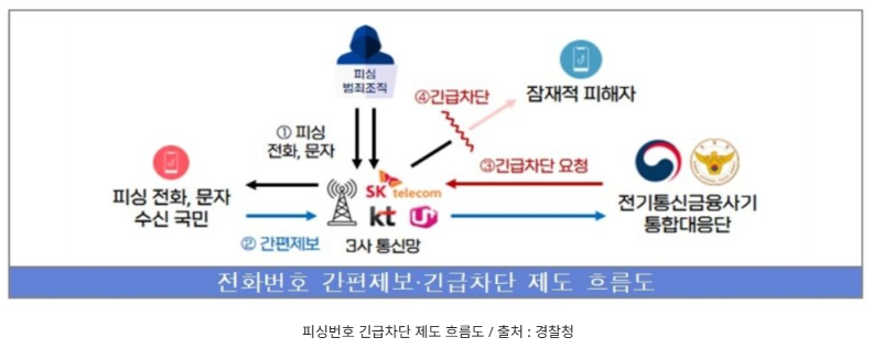 긴급차단제도는 보이스피싱 등 범죄에 악용된 전화번호를 신고하면, 통신사가 10분 안에 해당 번호를 발신·수신 불가 상태로 차단하는 제도입니다.