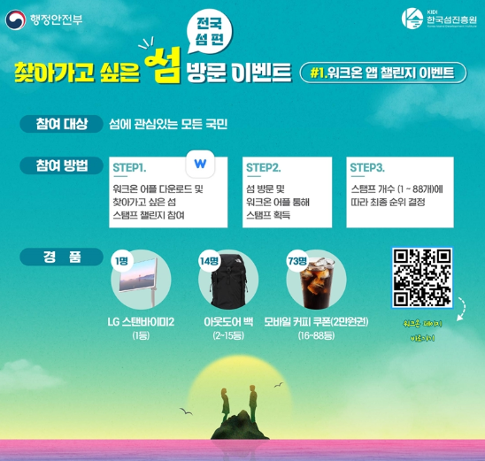 - 워크온 앱 내 챌린지 메뉴에서 ‘찾아가고 싶은 섬’ 검색