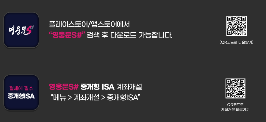 지금 바로 영웅문S# 앱을 설치하고 혜택을 챙겨보세요.
