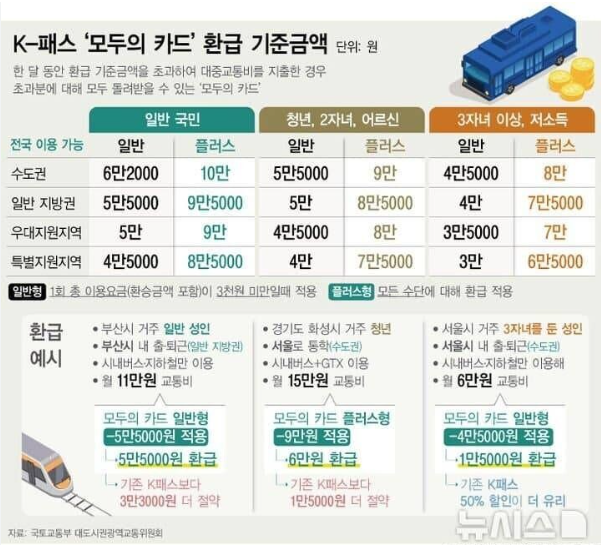 ※ 다만 지역별 무임교통 혜택(예: 70세 이상 무료카드)과는 별도입니다.